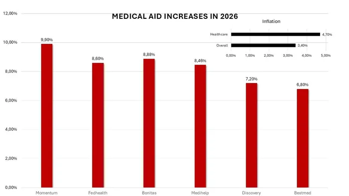 Medical aids will get 8.8% more expensive on average in 2026 among the big five.