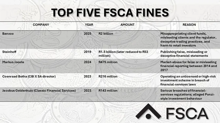 Banxso fined R2 billion from FSCA for serious financial misconduct.
