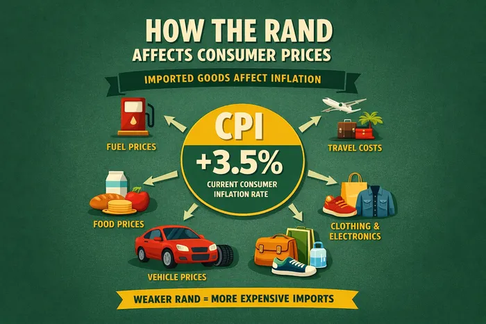 Crude calculations show that a depreciation of about 4.4% – roughly the move from R15.90 to R16.60 – could add about 0.7 percentage points to inflation over time as higher import costs move through supply chains.