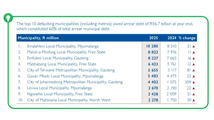 The number of municipalities with an arrear debt balance of more than R100 million has increased to 75 as of the end of March, when compared to the 69 seen a year earlier.