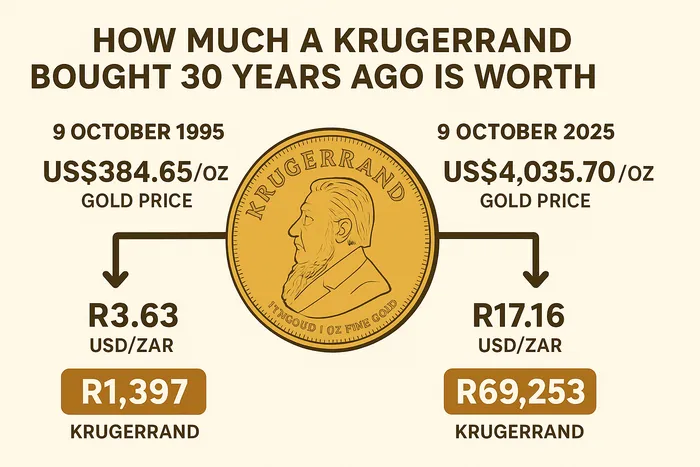 Gold has surged to record highs, and South Africans who bought Krugerrands 30 years ago have seen extraordinary returns.
