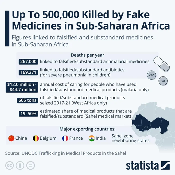 Half-a-million people killed by fake medicines in sub-Saharan Africa.