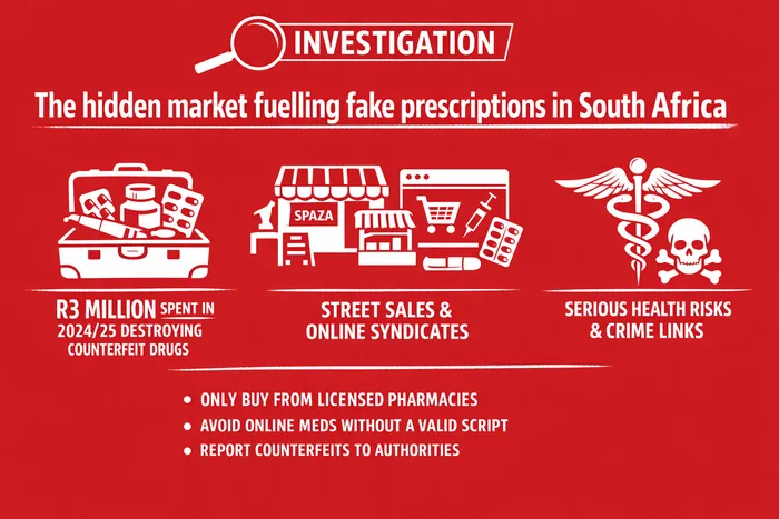 The state spent approximately R3 million to destroy fake products in that year as regulators emphasised that prescription medicines cannot legally be sold online or outside authorised channels.