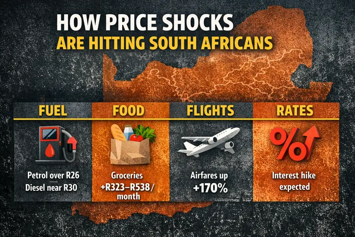 South Africans are facing a sharp rise in everyday costs as global fuel shocks ripple through the economy, pushing up the price of food, travel and borrowing.