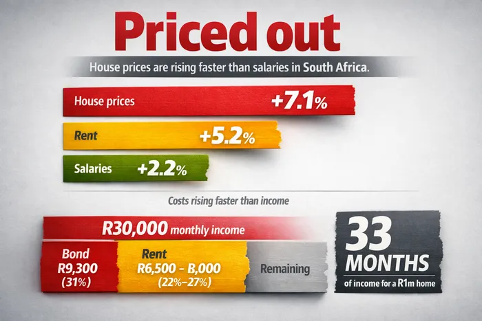 A typical bond repayment of around R9,300 on a R1 million home would consume roughly 31% of monthly income, already at the upper limit of what banks consider affordable.