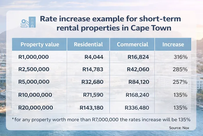 Proposed changes by the City of Cape Town could see short-term rental properties that are not primary residences reclassified from residential to business or commercial tariffs, according to Nox Cape Town.