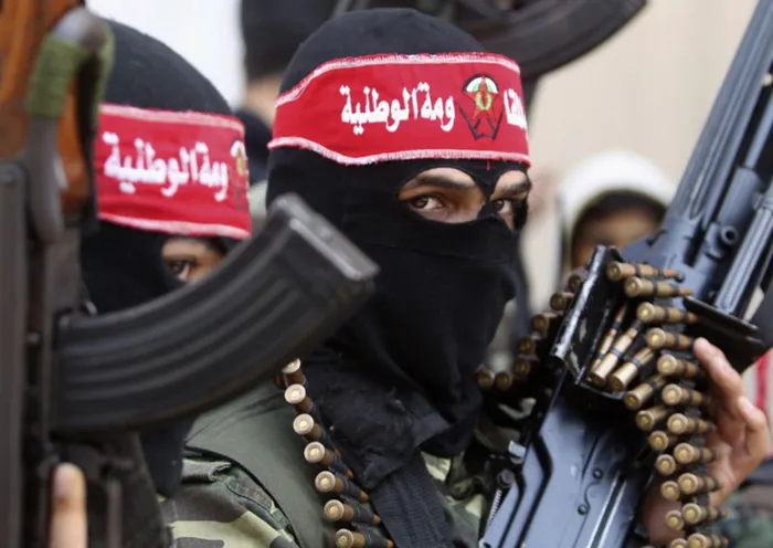 Members of the National Resistance Brigades, the military wing of the Democratic Front for the Liberation of Palestine, attend a news conference in Gaza City. Palestinian militant groups in the Gaza Strip have agreed to Arab and United Nations proposals for a truce in the latest cross-border fighting with Israel. File picture