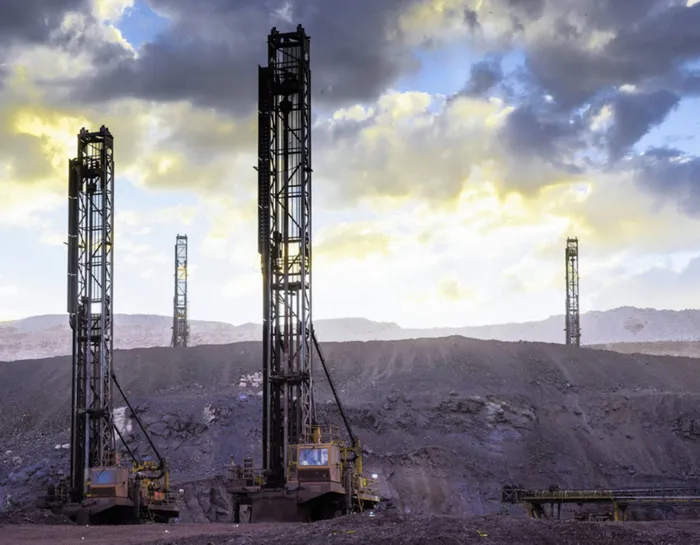Atlas blast drill rigs drilling blast holes in preparation for blasting in the Western Sishen Pit.Photo Supplied Atlas blast drill rigs drilling blast holes in preparation for blasting in the Western Sishen Pit.Photo Supplied