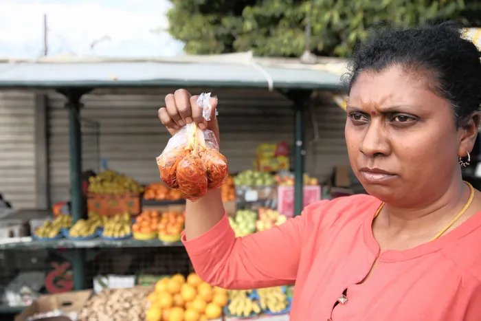 Joanne Kisten stands in front of her stall, holding her pickles and fried nuts. Joanne Kisten stands in front of her stall, holding her pickles and fried nuts.