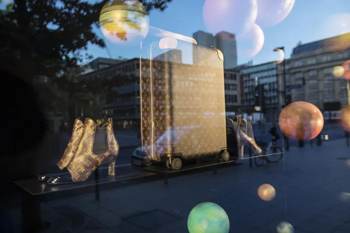 The Louis Vuitton logo adorns pairs of womens luxury leather revival ankle boots and a wheeled horizon suitcase as they sit in the window display of a LVMH Moet Hennessy Louis Vuitton SE boutique in Frankfurt, Germany. Photographer: Alex Kraus/Bloomberg The Louis Vuitton logo adorns pairs of womens luxury leather revival ankle boots and a wheeled horizon suitcase as they sit in the window display of a LVMH Moet Hennessy Louis Vuitton SE boutique in Frankfurt, Germany. Photographer: Alex Kraus/Bloomberg