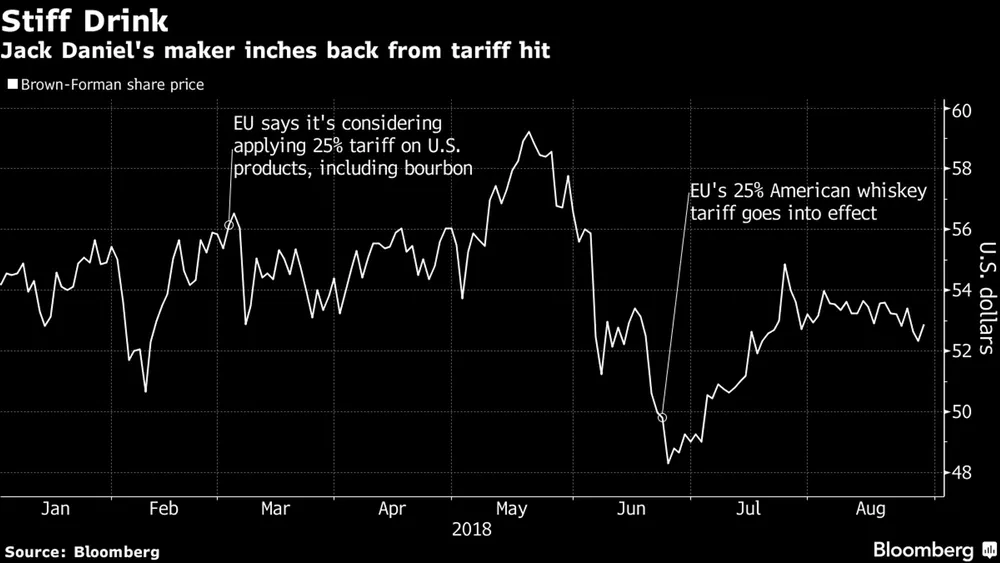 Even before the tariffs were imposed, the company had been working to soften the impact of the levies by building up inventories in markets outside the U.S. Brown-Forman has moved more product to France, Spain, Germany and Poland, where it has its own distribution network, it said in June.