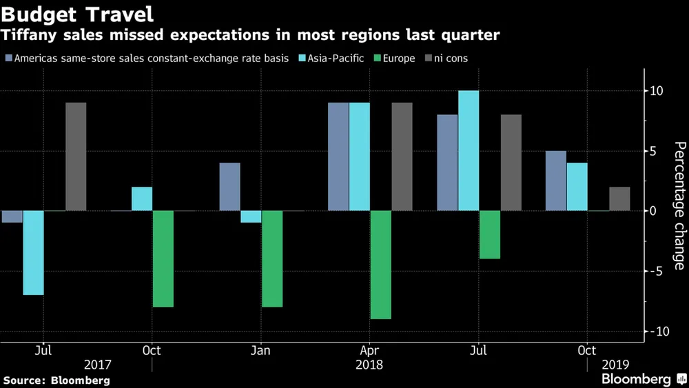 Earlier Wednesday, Tiffany reported weaker-than-expected sales on a same-store basis in all regions except Asia Pacific. The New York-based company said growth was limited by lower spending among Chinese travelers in the U.S., Hong Kong and Korea. Executives said on a conference call with analysts that they see a “clear pattern” in Chinese shoppers slowing spending outside of the mainland, due to the government’s efforts to foster local consumption. Domestic spending on Tiffany products rose last quarter.