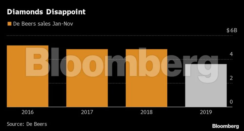 De Beers sales so far this year are down more than $1.2 billion from the same time in 2018.