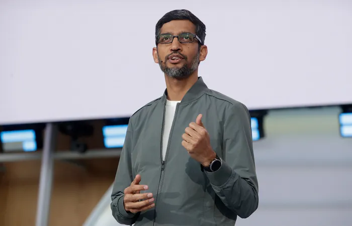 FILE - In this May 7, 2019 file photo, Google CEO Sundar Pichai speaks during the keynote address of the Google I/O conference in Mountain View, Calif. Google co-founders Larry Page and Sergey Brin are stepping down from their roles within the parent company, Alphabet. Pichai will stay in his role and also become CEO of Alphabet. (AP Photo/Jeff Chiu, File) FILE - In this May 7, 2019 file photo, Google CEO Sundar Pichai speaks during the keynote address of the Google I/O conference in Mountain View, Calif. Google co-founders Larry Page and Sergey Brin are stepping down from their roles within the parent company, Alphabet. Pichai will stay in his role and also become CEO of Alphabet. (AP Photo/Jeff Chiu, File)