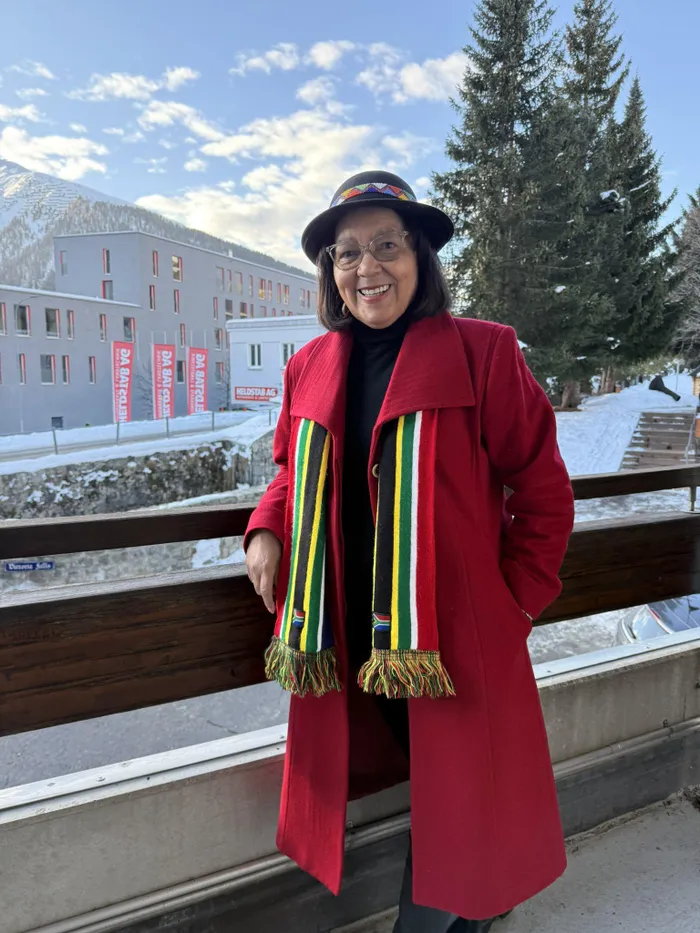 Minister of Tourism, Patricia de Lille, at the WEF Annual Meeting in Davos last month. Bright, warm and unmistakably South African, the scarf became one of the most sought-after items at SA House, drawing hundreds of visitors daily and creating a visible, moving billboard for the country across the snow-covered alpine town.