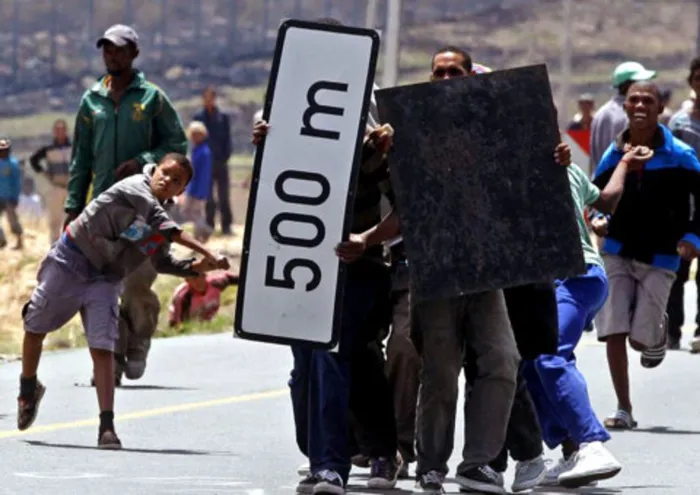 Striking farm workers throw rocks at South African police as they demonstrate in De Doorns , South Africa, Thursday, Jan 10, 2013. Striking farm workers in South Africa have clashed with police for a second day during protests for higher wages. The South African Press Association says police on Thursday fired rubber bullets at rock-throwing demonstrators in the town of De Doorns in Western Cape province, and protests were occurring in at least two other towns. (AP Photo/Schalk van Zuydam) Striking farm workers throw rocks at South African police as they demonstrate in De Doorns , South Africa, Thursday, Jan 10, 2013. Striking farm workers in South Africa have clashed with police for a second day during protests for higher wages. The South African Press Association says police on Thursday fired rubber bullets at rock-throwing demonstrators in the town of De Doorns in Western Cape province, and protests were occurring in at least two other towns. (AP Photo/Schalk van Zuydam)