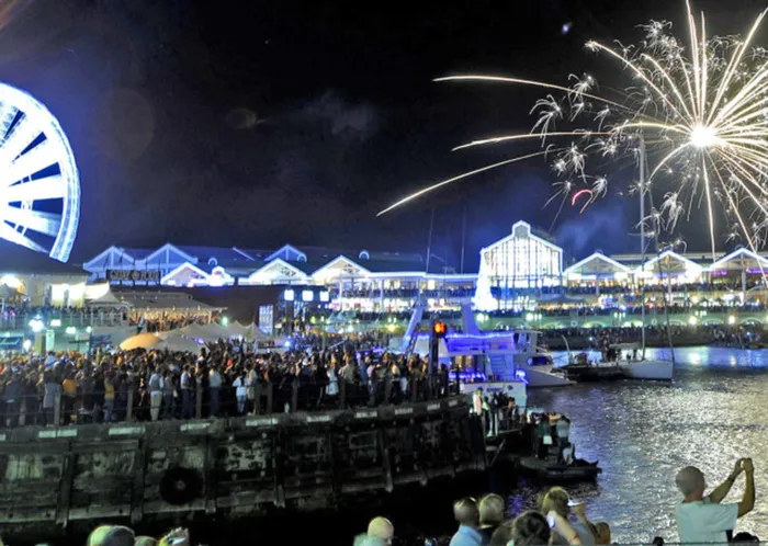 Cape Town - 110101 - Firewqorks Usher in the New Year at the V&A Waterfront. Thousands of people crammed into the waterfront to watch the display leaving sevre traffic congestion as they left shortly afterwards. Photo: Matthew jordaan Cape Town - 110101 - Firewqorks Usher in the New Year at the V&A Waterfront. Thousands of people crammed into the waterfront to watch the display leaving sevre traffic congestion as they left shortly afterwards. Photo: Matthew jordaan