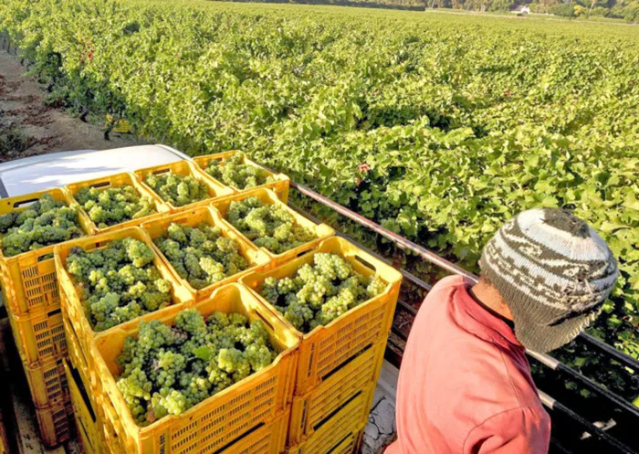 CAPE TOWN, 2014/02/19, Pickers collected the baskets - De Grendel Winelands grape picking let by wine master, Charles Hopkins. Award winning South African wine farm, situated on the Durbanville wine route, 20 minutes from Cape Town. Reporter: Bianca Coleman / Picture: Adrian de Kock CAPE TOWN, 2014/02/19, Pickers collected the baskets - De Grendel Winelands grape picking let by wine master, Charles Hopkins. Award winning South African wine farm, situated on the Durbanville wine route, 20 minutes from Cape Town. Reporter: Bianca Coleman / Picture: Adrian de Kock