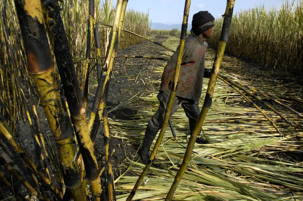A farm worker cuts sugar cane during harvesting on a farm near Malelane, Mpumalanga province, South Africa. Photographer: NAASHON ZALK/Bloomberg