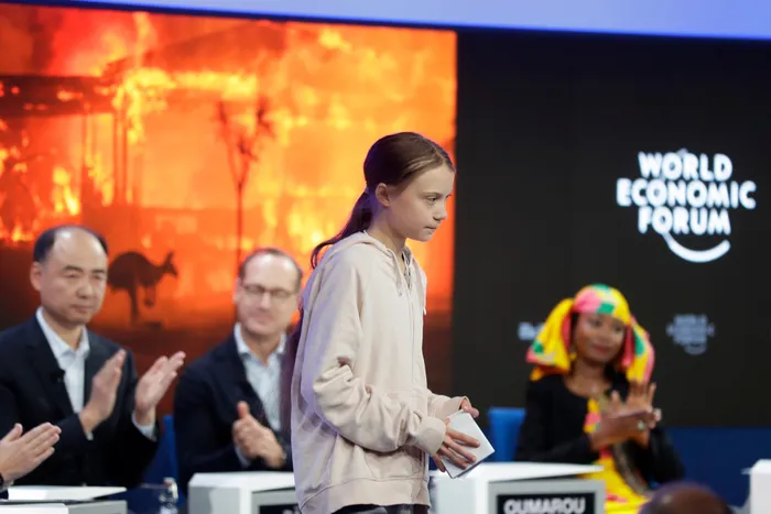 Panel members applaud for Swedish environmental activist Greta Thunberg after she addressed guests at the World Economic Forum in Davos, Switzerland, Tuesday, Jan. 21, 2020. The 50th annual meeting of the forum will take place in Davos from Jan. 21 until Jan. 24, 2020. (AP Photo/Michael Probst) Panel members applaud for Swedish environmental activist Greta Thunberg after she addressed guests at the World Economic Forum in Davos, Switzerland, Tuesday, Jan. 21, 2020. The 50th annual meeting of the forum will take place in Davos from Jan. 21 until Jan. 24, 2020. (AP Photo/Michael Probst)
