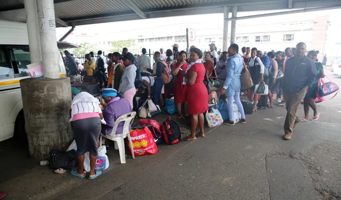South Africa - Durban - 26 March 2020- Coronavirus - Lockdown panic at Durban Taxi ranks, people are piling up at taxi ranks as they travel to their homes specially the long distance travellers. Picture : Nqobile Mbonambi/African News Agency(ANA) South Africa - Durban - 26 March 2020- Coronavirus - Lockdown panic at Durban Taxi ranks, people are piling up at taxi ranks as they travel to their homes specially the long distance travellers. Picture : Nqobile Mbonambi/African News Agency(ANA)