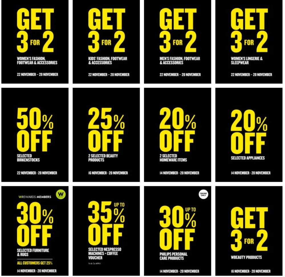 The country’s more boujee retailer, Woolworths are also running Black Friday deals that shoppers may be interested in.
