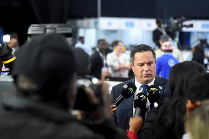 DA federal leader John Steenhuisen speaking to members of the media at the National Results Operations Centre, Gallagher Convention Centre in Midrand. Picture: Itumeleng English/Independent Newspapers