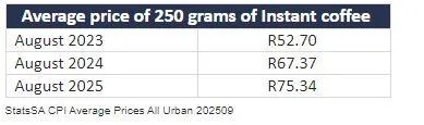 This increase placed instant coffee alongside eggs as one of the few items in South Africa’s grocery basket experiencing inflation above 20%.