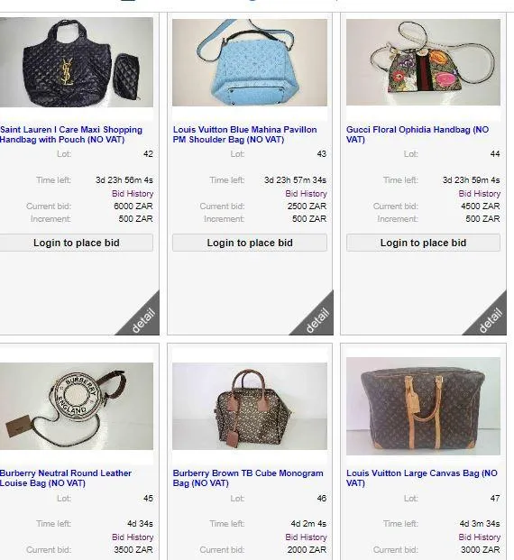 To date, the highest bids are R6500 on two Louis Vuitton Zephyr Suitcases and a Louis Vuitton Boîte Pharmacie vanity case. There are 18 designer items on the auction list, with the lowest bid at R1,000.