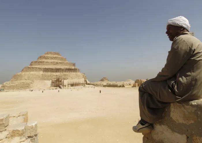 A guide sits on a stone as he looks at the Djoser's step pyramid in Saqqara, outside of Cairo March 5, 2011. Sites around the great pyramid at Giza, a Wonder of the Ancient World, the Sphinx and the cemetery at Sakkara have been nearly empty of tourists since a revolt started a month ago that ousted Hosni Mubarak and now Egypt wants visitors to return. REUTERS/Peter Andrews (EGYPT - Tags: CIVIL UNREST POLITICS TRAVEL SOCIETY) A guide sits on a stone as he looks at the Djoser's step pyramid in Saqqara, outside of Cairo March 5, 2011. Sites around the great pyramid at Giza, a Wonder of the Ancient World, the Sphinx and the cemetery at Sakkara have been nearly empty of tourists since a revolt started a month ago that ousted Hosni Mubarak and now Egypt wants visitors to return. REUTERS/Peter Andrews (EGYPT - Tags: CIVIL UNREST POLITICS TRAVEL SOCIETY)