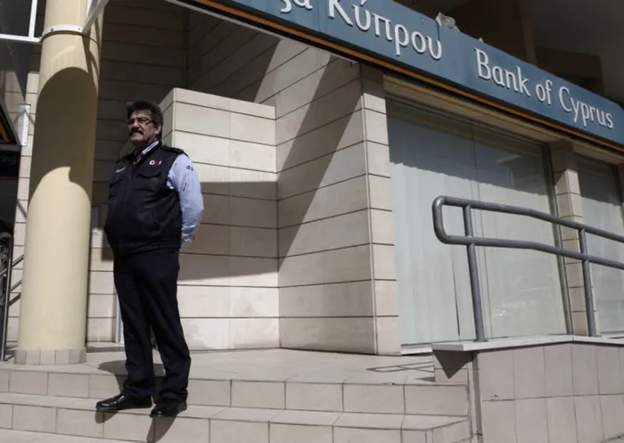A security guard stands in front of a branch of the Bank of Cyprus in this file image. The ANC is worried about international ownership of local security companies. A security guard stands in front of a branch of the Bank of Cyprus in this file image. The ANC is worried about international ownership of local security companies.