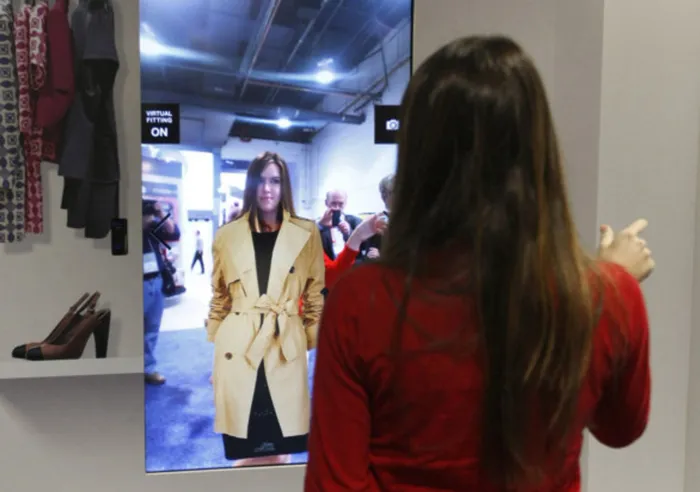 A woman demonstrates a conceptual virtual fitting room. Picture: Rick Wilking, Reuters A woman demonstrates a conceptual virtual fitting room. Picture: Rick Wilking, Reuters