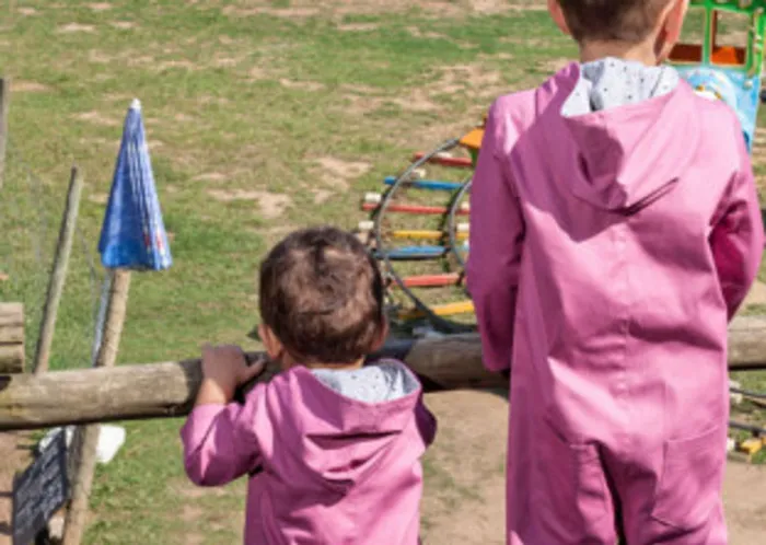 Pink with grey polka-dot details and in lining of the hoodie. Pink with grey polka-dot details and in lining of the hoodie.