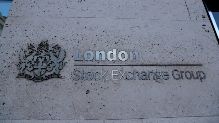 Signage is seen outside the entrance of the London Stock Exchange in London Signage is seen outside the entrance of the London Stock Exchange in London