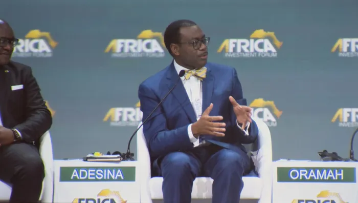 The president of the African Development Bank (AfDB), Akinwumi Adesina, speaking at the opening of the African Investment Forum in Johannesburg on Wednesday (Pic: AfDB Twitter) The president of the African Development Bank (AfDB), Akinwumi Adesina, speaking at the opening of the African Investment Forum in Johannesburg on Wednesday (Pic: AfDB Twitter)