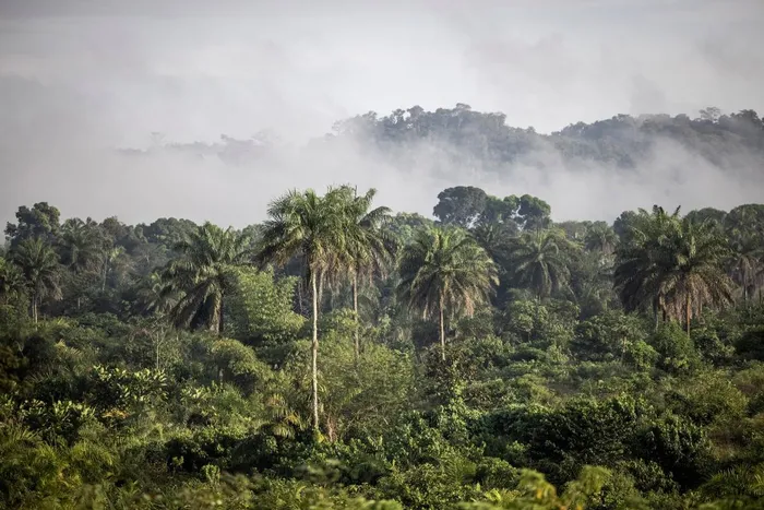 The forest covered hills are pictured on the outskirts of Bopolu on November 15, 2021. When Liberia’s government signed an agreement with a little-known Dubai company run by a royal sheikh in 2023, the "carbon credit" deal promised to protect vast tracts of forests and offset big polluters' emissions.