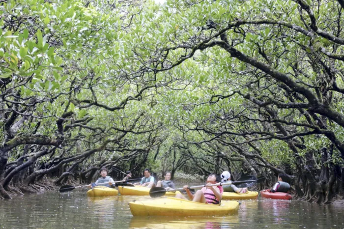 Canoeists paddle through a mangrove forest in Amami, Japan. In the past, five climate-related lawsuits have been filed with Japanese courts, including against coal-fired power plants, said Kyoto University assistant professor Masako Ichihara.