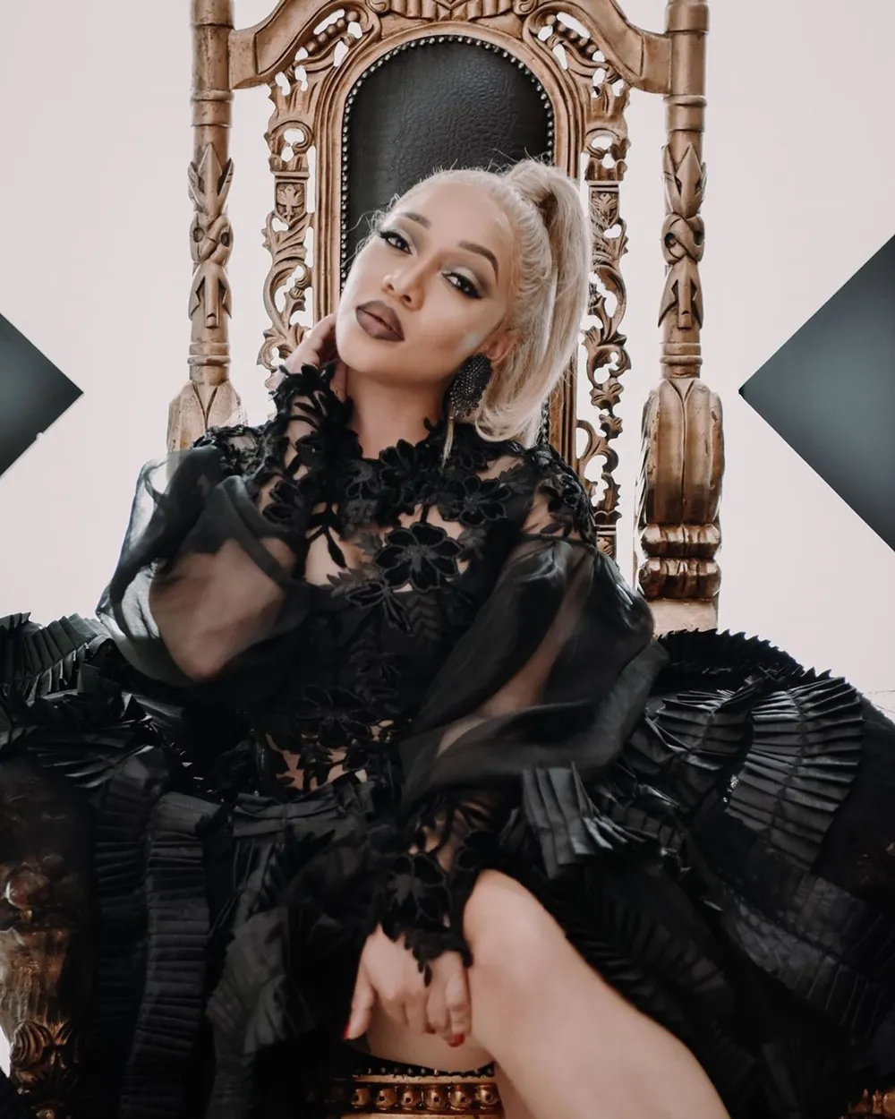 At the David Tlale X Avon launch in February, the radio personality dripped in a David Tlale black number, completing the look with a blonde ponytail.