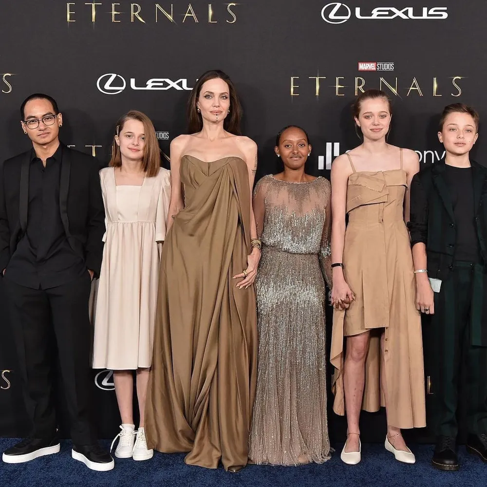 Angelina, who plays Thena in her latest movie, attended the premiere on Tuesday with her five children, Zahara, Vivienne, Shiloh, Maddox and Knox.