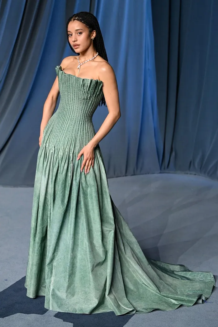 Another Hollywood star that left us stunned is Jenna Ortega, who wore a sculptural metallic leaf that was seemingly hooked around her neck and floating in place over her chest as her entire back was exposed.
