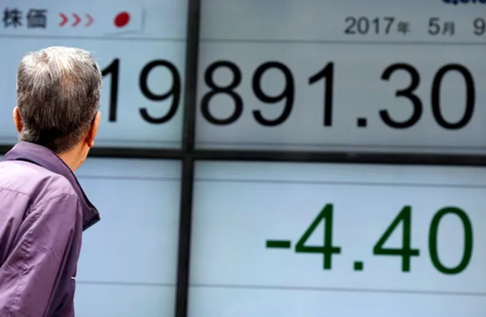 A man looks at an electronic stock board showing Japan's Nikkei 225 index at a securities firm in Tokyo, Tuesday, May 9, 2017. Shares were mixed in Asia on Tuesday after record highs on Wall Street overnight. (AP Photo/Eugene Hoshiko) A man looks at an electronic stock board showing Japan's Nikkei 225 index at a securities firm in Tokyo, Tuesday, May 9, 2017. Shares were mixed in Asia on Tuesday after record highs on Wall Street overnight. (AP Photo/Eugene Hoshiko)