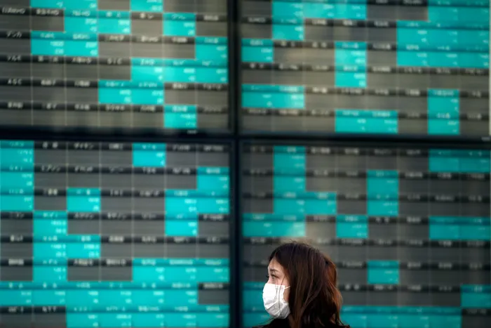 In this Thursday, March 12, 2020, photo, a woman stands in front of an electronic stock board showing Japan's Nikkei 225 index at a securities firm in Tokyo. Asian stock markets and U.S. futures fell Monday, March 16, 2020, after the Federal Reserve slashed its key interest rate to shore up economic growth in the face of mounting global anti-virus controls that are shutting down business and travel. (AP Photo/Eugene Hoshiko) In this Thursday, March 12, 2020, photo, a woman stands in front of an electronic stock board showing Japan's Nikkei 225 index at a securities firm in Tokyo. Asian stock markets and U.S. futures fell Monday, March 16, 2020, after the Federal Reserve slashed its key interest rate to shore up economic growth in the face of mounting global anti-virus controls that are shutting down business and travel. (AP Photo/Eugene Hoshiko)