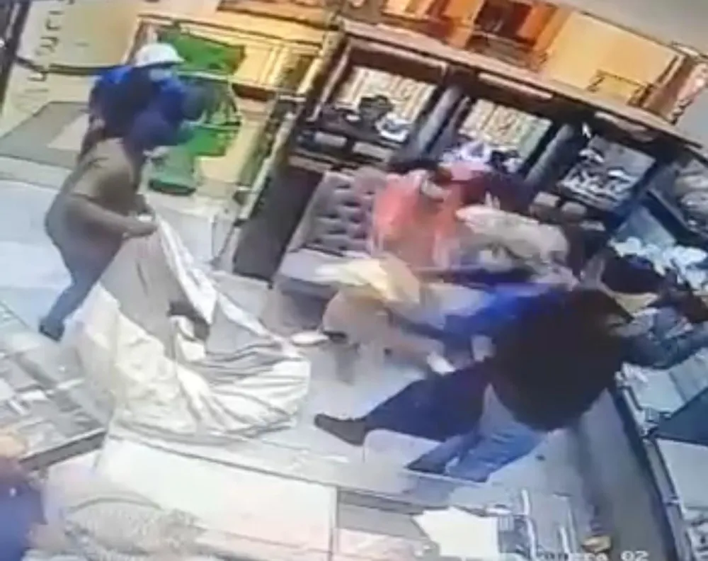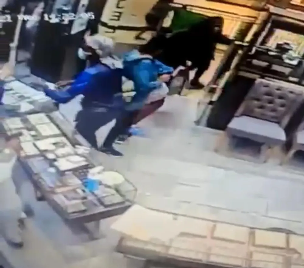In one of the videos of the robbery, also circulating on social media, three men enter the jewellery store with scarves around their heads and long gowns.