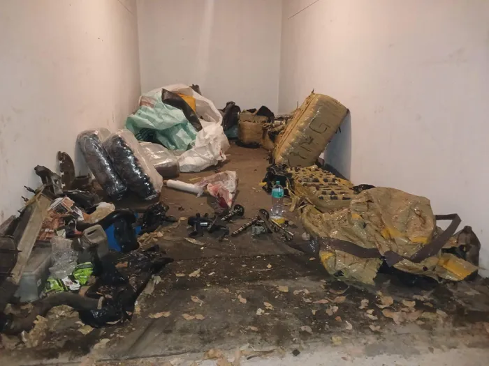 Inside the storage locker in Woodpecker Street, Cotswold, where police found R2 million worth of drugs on Wednesday night. The suspect had already jumped a wall by the time this photo was taken.