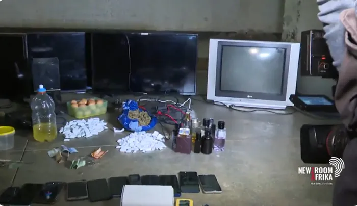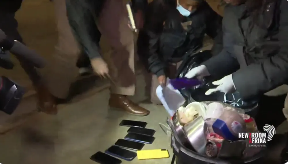 A raid by correctional services officials and police resulted in the seizure of numerous contraband including cellphones at Johannesburg Correctional Centre, also known as Sun City. Picture: Screengrab/Newzroom Afrika