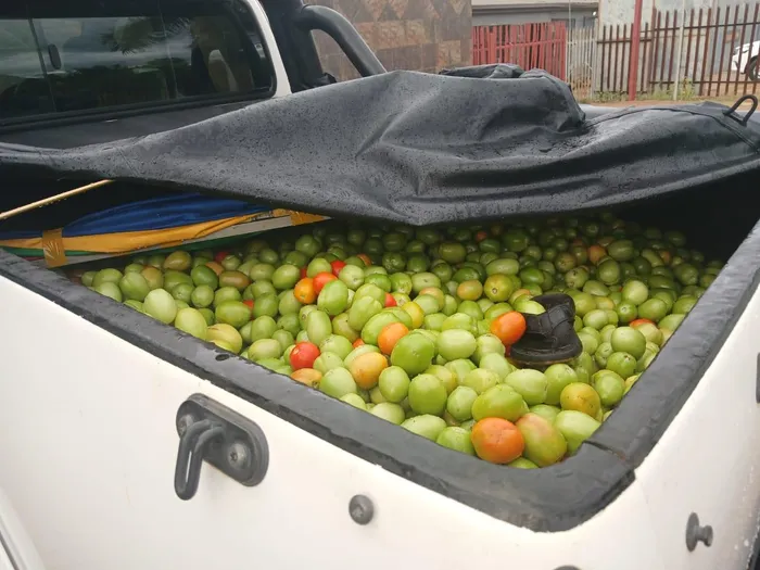 “During the search, members found tomatoes loaded in the back of the vehicle. Upon further inspection underneath the tomatoes, they discovered dagga wrapped in yellow cellotape. A total of 56 plastic bags, each weighing approximately 2kg, were confiscated, with a combined weight of approximately 111.68kg and an estimated street value of R670,080,” Magagula said.