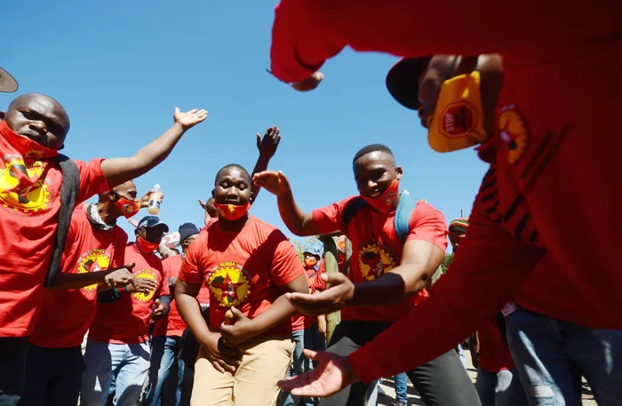 More than 400 members on NUMSA is demonstrating for better wage increases at the Bellville South community centre. Workers affiliated with the National Union of Metal Workers of South Africa (Numsa) in the steel and engineering sector, started with their nationwide strike for higher wages. Numsa, one of the most prominent labour organisations in South Africa, is demanding an 8% wage increase in the first year and a 2% above-inflation increase in the subsequent two years but was only offered a 4% for the first year. Photographer: Armand Hough/African News Agency(ANA)