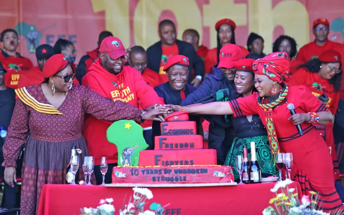 The Economic Freedom Fighters is on a celebration trail as it commemorates 10 years of its existence this month, with EFF CIC Julius Malema addressing a large gathering in Marikana, North West on Wednesday. Picture: Oupa Mokoena / African News Agency (ANA)