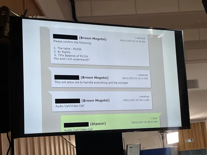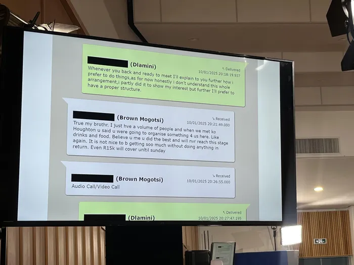 The messages, presented during the testimony of SAPS Crime Intelligence Head, Dumisani Khumalo on Tuesday, reveal that Matlala paid hundreds of thousands of rands to Mogotsi, allegedly to secure favours, political cover, and access to high-level ANC events.