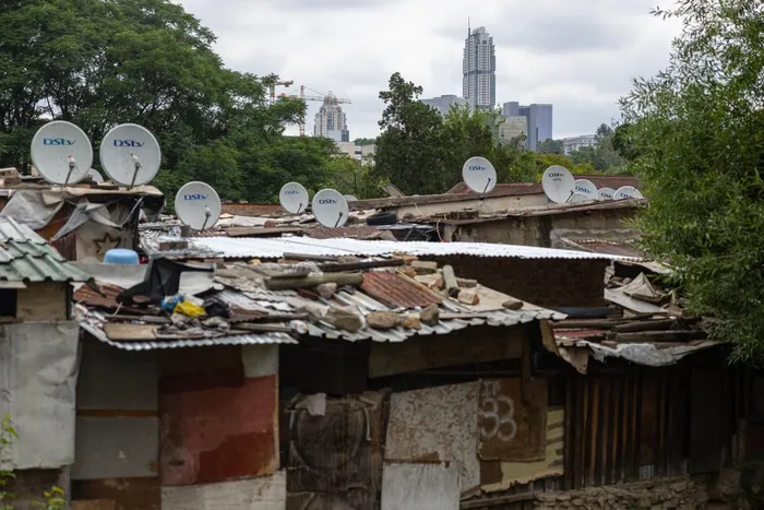 The Sandton skyline overlooks an informal settlement in Innesfree Park in Johannesburg on November 14, 2025. Wealth inequality is a global emergency that threatens democracy and social cohesion, experts warned, urging G20 leaders meeting in South Africa this month to establish a panel to tackle the crisis. The "inequality emergency" is leaving billions hungry and could worsen under the United States' "law of the jungle" approach to trade under President Donald Trump, a committee led by Nobel Prize-winning economist Joseph Stiglitz said in a new report.